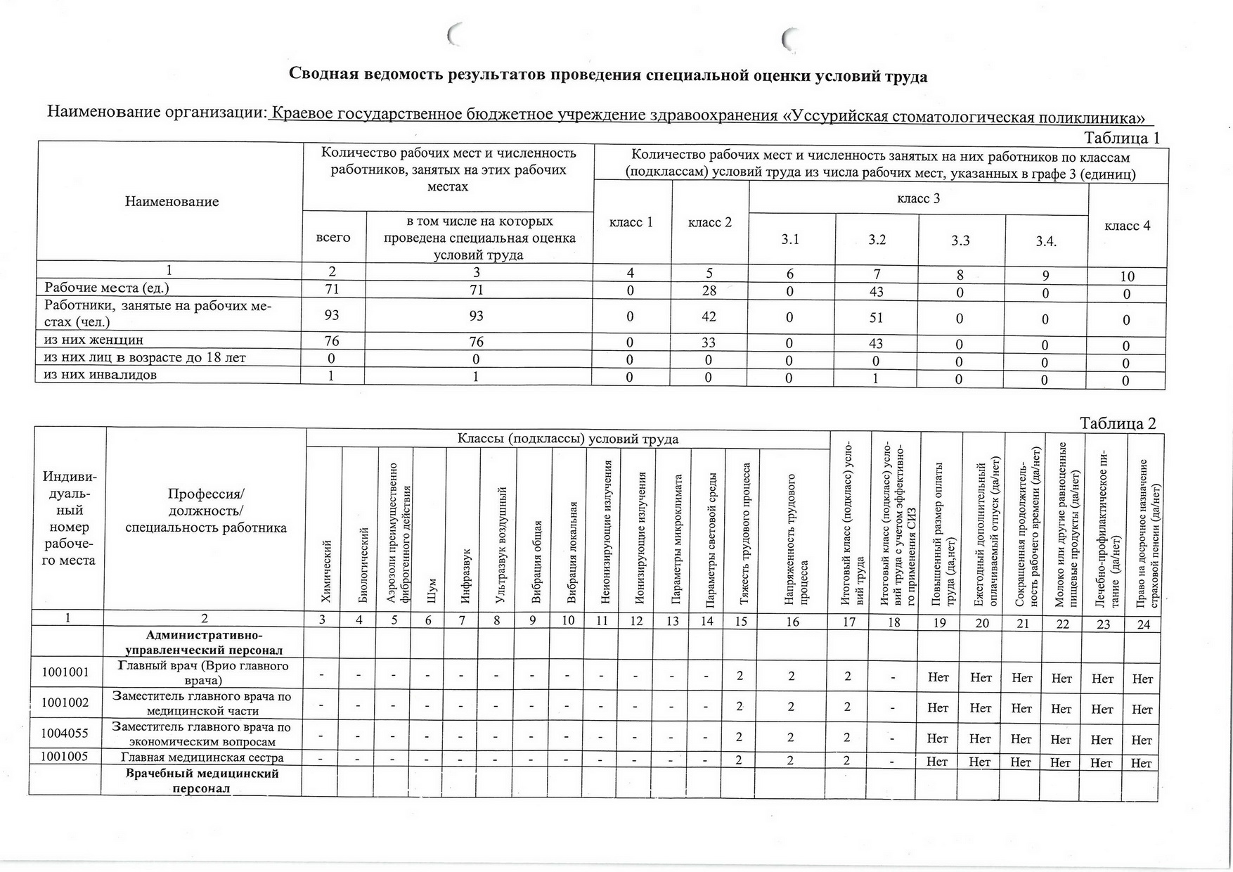 Специальная оценка условий труда КГБУЗ «Уссурийская стоматологическая поликлиника» 2026г